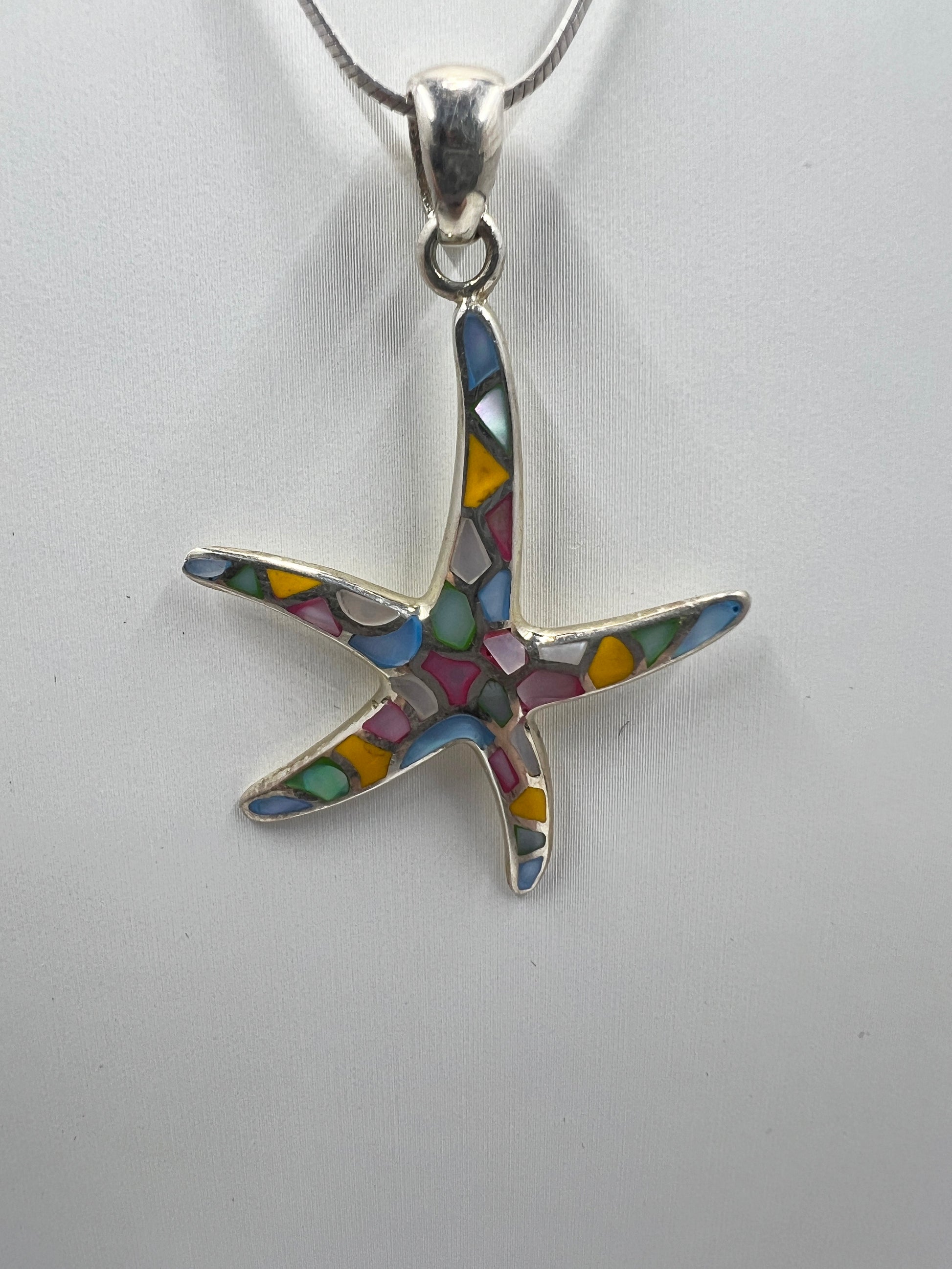 925 Sterling Silver Hawaiian Starfish synthetic opal pendant